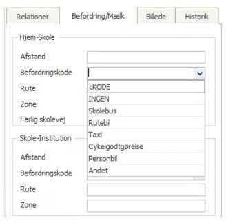I TEA er der et faneblad, der hedder Befordring/Mælk. Herunder vælges ”Befordringskode”: